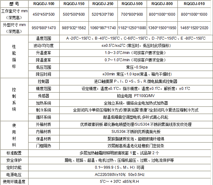 经国家环境试验设备质量监督检测中心检测,符合“环境试验设备技术条件”系列国家标准中的: